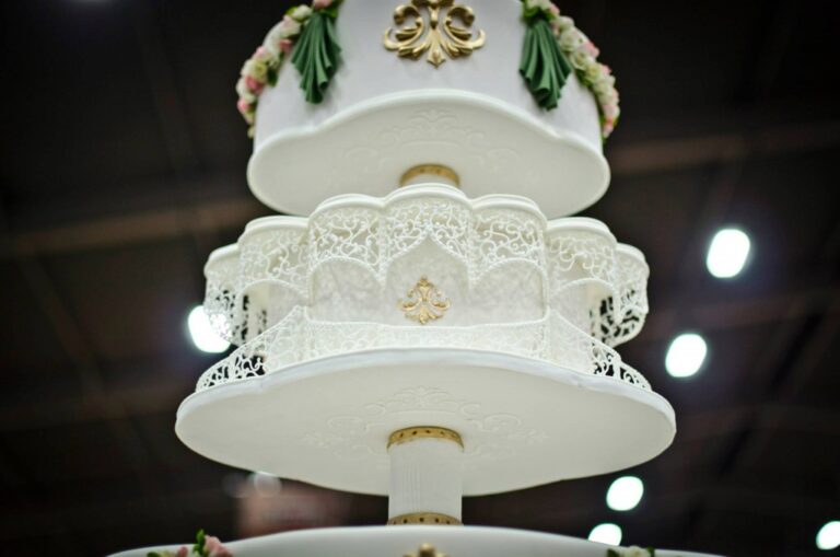 My cheapo spatula head broke off, so it’s a very nice stencil spreader now;)! I took a damp paper towel and wiped it across the fondant where the stencil was going and that little bit of water made the stencil stick to the cake so that I could manage the icing over the stencil! I took a little royal icing (pretty stiff consistency) and wiped it on! Careful to just barely hold down the part I was working on so it wouldn’t go up underneath! After you have it wiped on, just pull it off, wait for it dry and do it again until you have gotten around the cake:)!